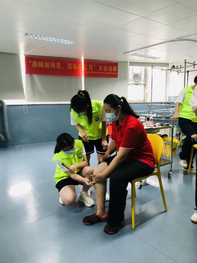 团委学生会在越秀校区10栋护理技能实验中心举办了“燕帽谢师恩,劳动耀五月”为主题的回馈师恩劳动周义诊志愿活动。