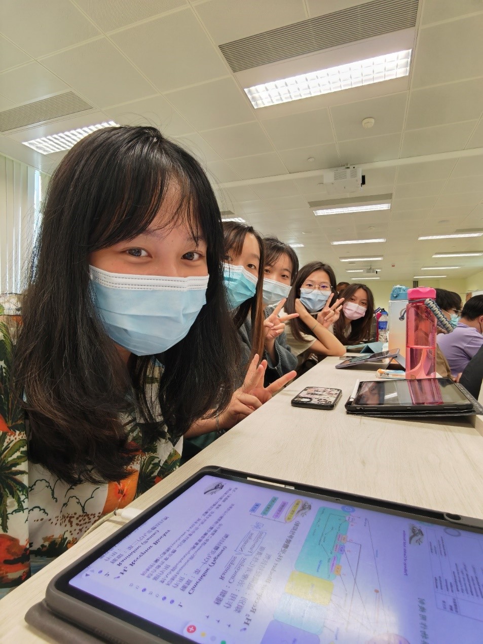 钟可颖(左一)与同学们