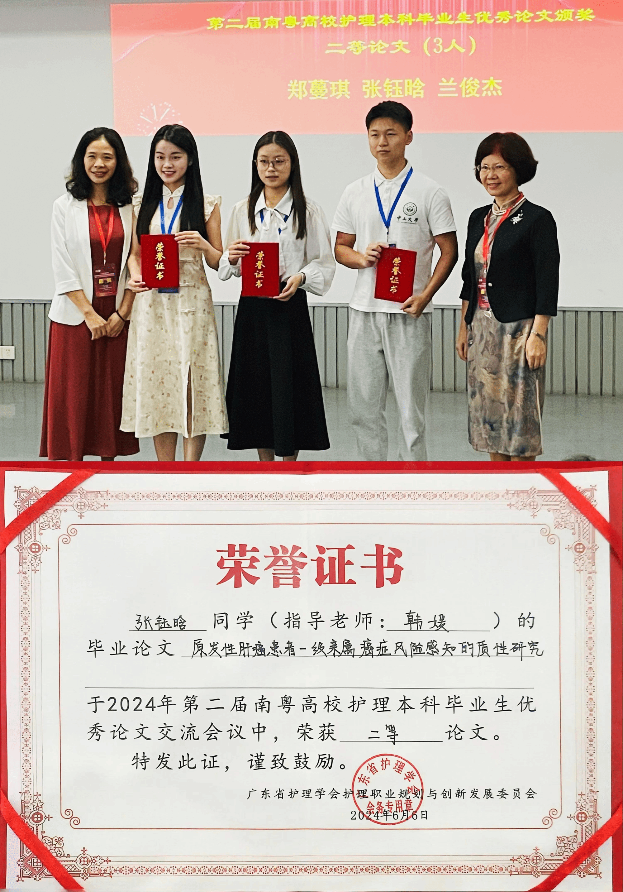 张钰晗同学获第二届南粤高校护理本科毕业生优秀论文二等奖(正中)