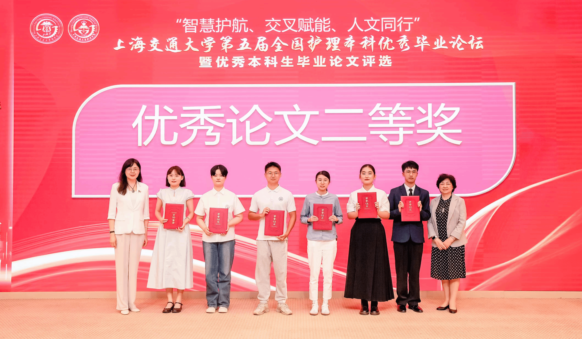 何佳乐同学获第五届全国护理本科优秀毕业论文二等奖(右三)