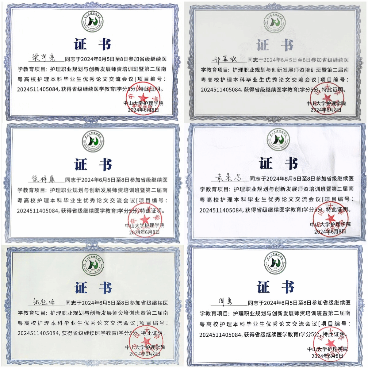 6名本科生获第二届南粤高校护理本科毕业生优秀论文交流会学习证书