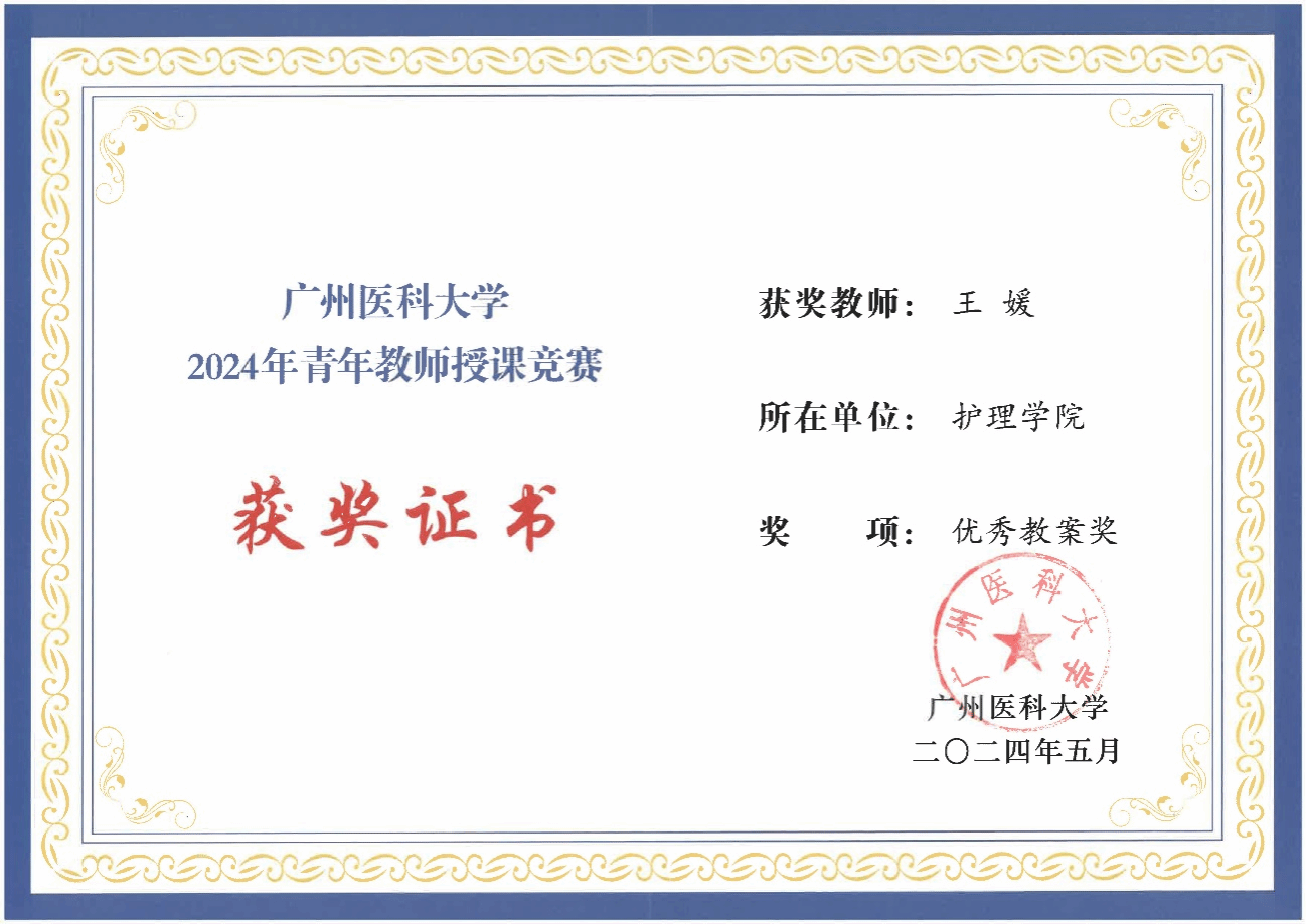 王媛老师获2024年校级青年教师授课竞赛优秀教案奖
