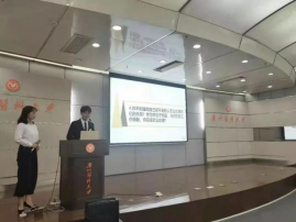 接着,第十五届团委学生会主席柯春洁对2018-2019学年团委学生会工作进行总结,提到了在这一年里,团委学生会紧跟时代步伐,开展了一系列团委活动和学生活动,取得了优秀的成绩,也丰富了同学们的课余生活,最后柯春洁主席表达对新一任的主席团的期待,希望大家继续让护院发光发热,为同学们服务。