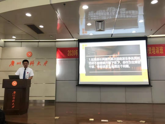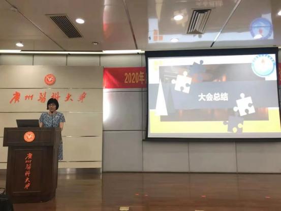 结束候选人的展示环节后,接着是学生会主席董岩作2019-2020学年团委学生会工作总结及欧丽娅主任为新委员董岩、代思迪、王志豪、陈旭璇发放聘书。