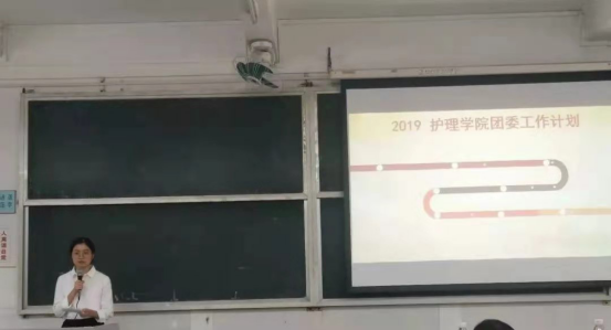 紧跟着, 陈旭璇副书记以“与信仰对话”主题报告会开场,介绍了本学年团日活动、智慧团建、寒假社会实践活动、学雷锋月活动、护理技能大赛以及暑期“三下乡”活动的组织开展情况,希望在干部们的带领下干事们能更好地服务同学,番号鸽