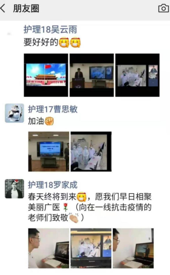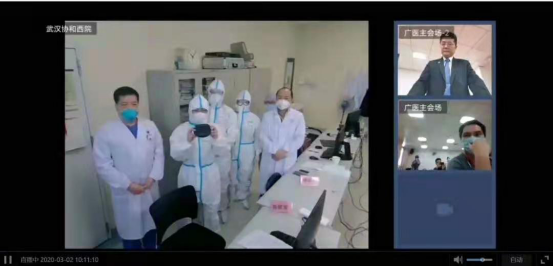 活动的第三阶段,我们还有幸连线到了广医赴武汉医疗队成员。广医附属第一医院的张挪富副院长和徐远达教授向学校汇报了战“疫”一线的工作情况,表达了战胜困难打赢这场战役的决心,并勉励广医学子们秉承广医人精神和南山风格,在新的学期里继续努力。同学们都认真观看,深刻感受到了广医最美逆行者的伟大精神。