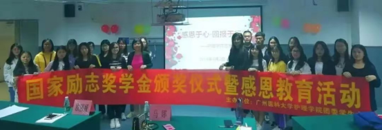 在越秀校区10栋如期举行了国家励志奖学金颁奖仪式暨感恩教育活动。