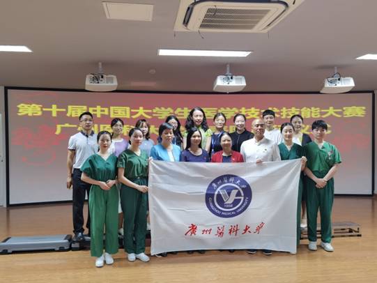 的教学水平和学生风采。希望各位参赛选手和指导老师,努力弘扬“艰苦创业、脚踏实地、开拓进取”的广医人精神,充分利用大赛平台,不畏艰难、团结一致,以昂扬的斗志、娴熟的技能和优异的成绩展现我校师生良好的精神风貌,为人生留下美好的回忆。