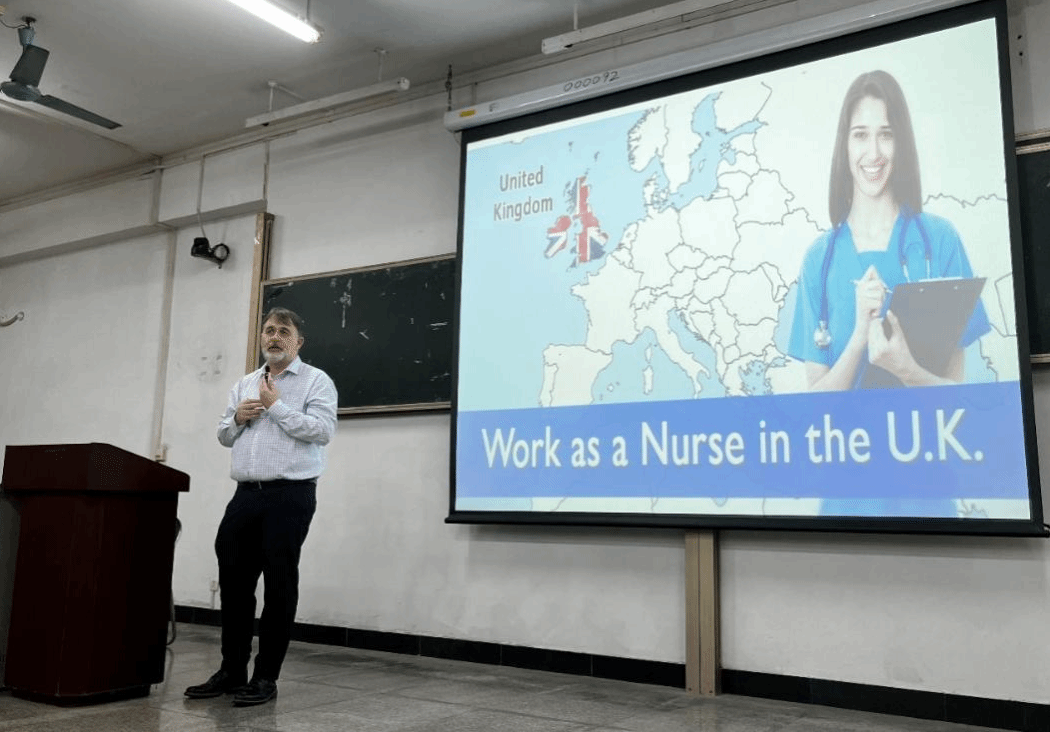 Smith教授介绍了他的家乡爱尔兰传统文化及风土人情、英国护理教育及护理从业人员的现况,全球护理人才需求情况等。在问答环节,同学们积极举手提问,请教海外注册护士执业的要求及工作情况、到国外攻读护理学硕士及博士相关问题等。Graeme Drummond Smith教授一一给予耐心解答。本次讲座为同学们提供了宝贵的学习交流机会,拓展了学术视野,对全球护理行业有了进一步的了解,使他们受益匪浅。