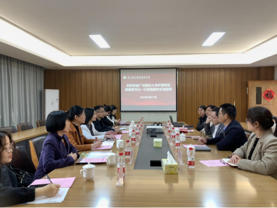上午9点40分,交流会在广州康大职业技术学院综合楼410会议室正式开始。广州康大职业技术学院执行校长朱金龙、副校长钟新波,卫生健康学院院长罗艳华、党总支书记徐佳佳等领导热情接待了广医番号鸽