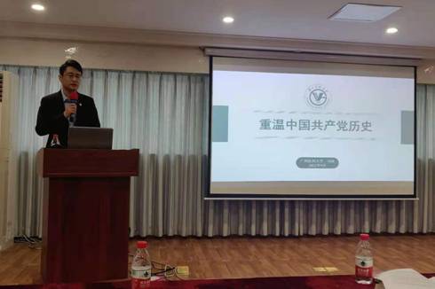 随后,我校马克思主义学院刘涛博士以“重温中国共产党历史”为主题,从“为什么要学习党的历史”、“如何把握党史的主题和线索”、“中国共产党为什么能”三方面,通过梳理党史的时间脉络、理论脉络及党的历次代表大会的重要内容,带领党员回顾了百年党史,深刻阐述了历史之所以选择中国共产党,在于其具备政治领导力、理论创新力、自我修正力和坚定的信仰。