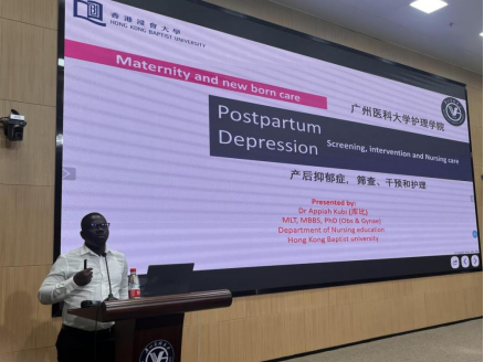 Appiah Kubi博士向参加讲座的本科生们介绍了产后抑郁症的流行病学现状、症状表现、筛查方法及干预治疗的最新进,详细分析了产后抑郁症对母婴身心健康的影响,并提出了社区教育宣传、全周期筛查、陪产假政策支持、家长共同育儿指导等综合预防策略。同时,Appiah Kubi博士特别介绍了护士角色在产后抑郁症筛查与干预中的重要性:护士可以通过共情产妇、早期识别风险因素、积极动员家庭支持系统、专业解读婴儿行为以及督导药物依从性等措施,构建一个全面且持续的护理网络,为产妇的康复提供有力保障。