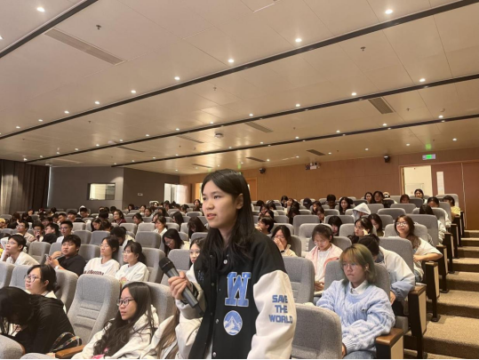 在讲座尾声,现场互动十分热烈。学生们对产后抑郁这一主题表现出极大的兴趣,提问踊跃。Kubi 博士在认真倾听每一个问题后,给予了专业且详尽的解答。整个交流过程中,现场气氛极其热烈,学生们的思维火花不断碰撞。
