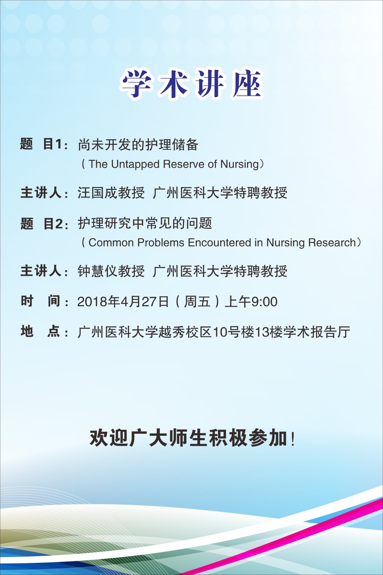 【讲座预告】汪国成、钟慧仪特聘教授学术讲座