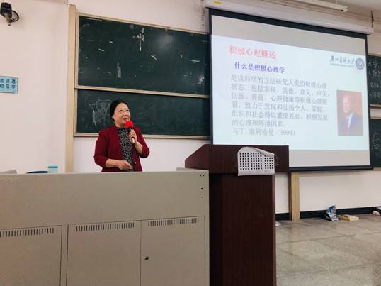 紧接着,周院长列举了国外两项关于“感恩”的研究,为同学们讲解了感恩的三个作用:一是提高幸福感、降低抑郁;二是增进社会关系;三是促进合作及亲社会行为。对于“乐观”的阐述,周英院长提到乐观有利于提高工作效率,做出正确决策,提高生活质量。