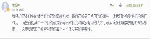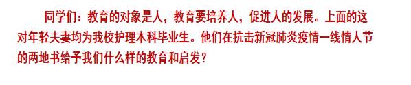 在第一次《护理教育学》绪论的教学中,罗艳华教授将课程内容、思政和疫情三位一体的结合起来并让学生进行讨论。
