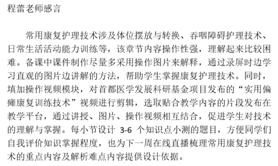 开展线上见习的教学资源主要来自三个方面:一是在学校在线开放课程建设中录制的微视频,专门介绍社区护理实践,如实地再现社区医护人员的工作状况;二是以往学生在社区护理见习时自拍的视频;三是关于社区卫生服务的新闻视频。这三类视频从不同角度反映了社区卫生服务的状况,非常适合线上见习。我们开展线上见习的具体做法是,学生分组后,各自观看线上见习提供的微视频,查询相关资料,通过小组学习,总结社区护理实践中的某项主题,完成并提交作业。教师利用超星平台的“聊天”功能,在后续“社区护理实践分享”课中组织学生们分享作业内容,交流社区护理实践心得。第六周给出的线上见习任务是围绕观看“生命需要运动——关节活动法”等视频,开展脑卒中病人康复护理的线上见习。(见图2-1、图2-2)