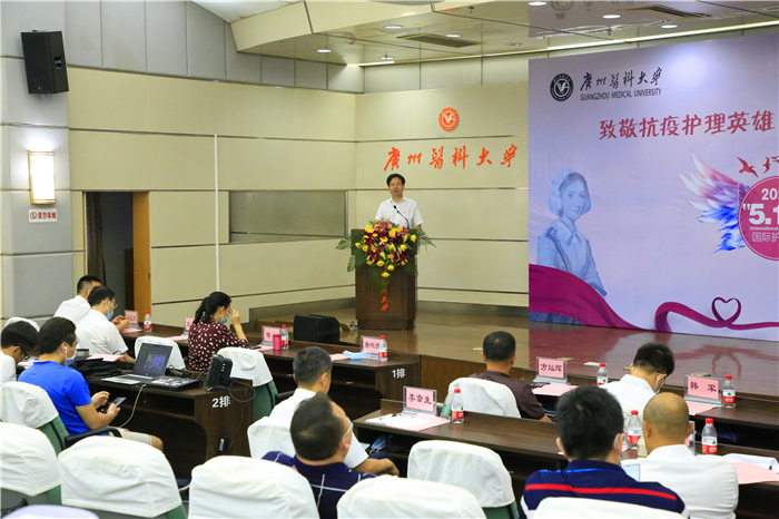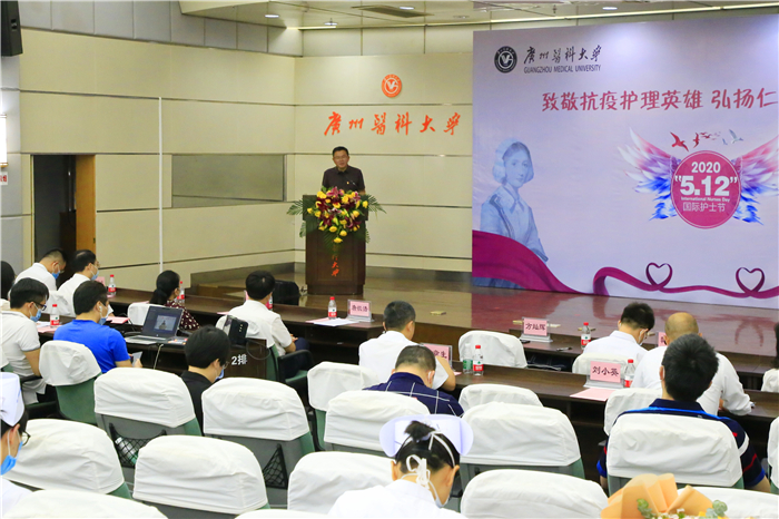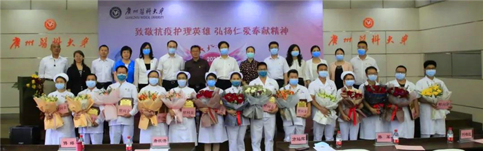 2020年5月12日,第109个国际护士节,今年国际护士节的主题为“守护世界健康”。当日上午,学校举办“致敬抗疫护理英雄 弘扬仁爱奉献精神”主题庆祝与致敬活动。广州市人大常委会副主任、市总工会主席唐航浩,团市委副书记高洪祥,广州市妇联副主席傅蝶,广州市教育工会负责人韩军等领导,学校副校长、工会主席方灿辉和相关职能部门负责人,各附属医院相关负责人,广医系统全体援鄂护理人员,番号鸽