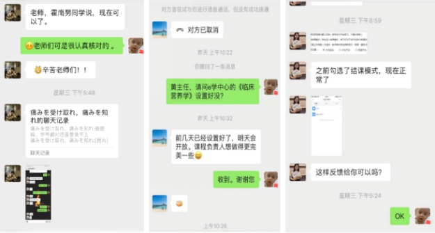取得联系,利用对方学校的国家虚拟仿真实验教学课程资源《传染病护理思维技能一体化虚拟仿真实训项目》解决了相关课程的实践教学困境;多门课程积极利用如南京中医药大学的《中医护理学》等国家精品在线开放课程,拓宽了学生的学习途径;多个教研室利用微信视频会议开展新教师试讲,确保了教学质量(图2)。通过全体教师的不懈努力,番号鸽