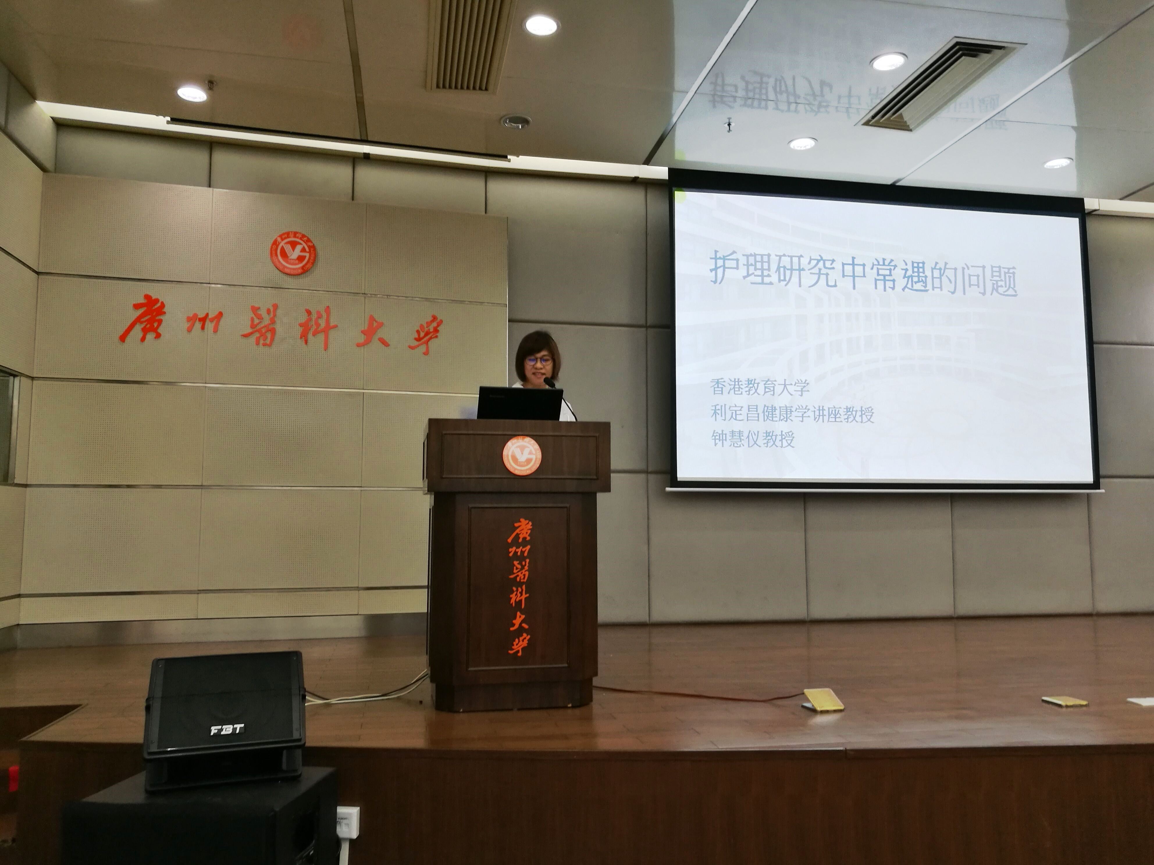讲座由周英副院长主持,在讲座之前首先向两位特聘教授颁发了聘书。随后,汪国成教授作了题为《尚未开发的护理储备》的学术讲座,汪教授紧贴国际护理发展趋势、结合外国护理发展实践,逐步深入地剖析目前护理学专业发展面临的机遇和挑战,启发鼓舞护理学教师、学生及临床一线护士勇于改革、敢于创新,努力创造护理发展新局面。钟慧仪教授作了题为《护理研究中常见的问题》的学术讲座,钟教授从研究者、研究思维及方法的角度,通过研究实例详细解释护理研究中常见的问题及处理方法。此次讲座不仅开阔了广大师生及临床护士的视野,而且更引发了大家对国内护理学专业发展及护理研究的深入思考。