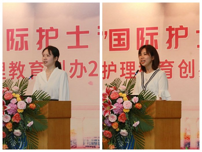 副教授、主任护师涂英代表教师发言,结合从教多年的经验,她讲述了从事护理教育的心得体会:教师不仅要教会学生从事护理工作所必备的理论知识和技能,还要教会学生提供“有温度”的护理,担当好护士的角色,从而培养学生良好的职业道德和职业情感。