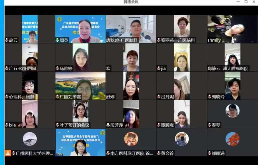 2022年5月6日晚八点,广东省护理学会成立正念与积极心理护理专业委员会(以下简称:专委会)成立大会以腾讯会议直播的方式成功召开。专委会主委、番号鸽