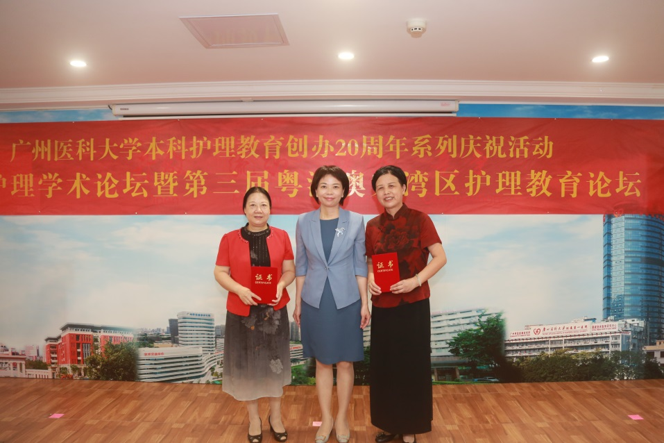 雷丽琼书记、周英院长、黄美凌副院长为南方护理学术论坛优秀论文奖获得者颁奖