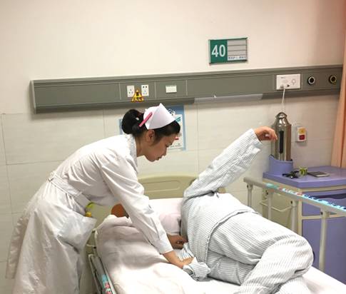 2014年,切缝是他进入职业生涯在规范化培训轮科学习关键时期。那一年,在中心ICU一区轮科期间,每天上班都要给卧床患者进行床上浴与更衣操作,这种平常而又不普通的卧床病人沐浴与更衣操作使他有很深的感触,同时也总结了其他同事对这种工作中不愉快的感受,作为创新改正的突破口,面对现有普通病员服上衣一般为胸前正中处开襟结构(见图7),类似纽扣或系带的连接件设置在对开襟上,使用此类病员服上衣为卧床病人更衣时,需完成至少三步操作:①将病人推向左/右侧翻身,穿以上一侧肢体衣服;②再将病人放置平躺卧位,进行转身过渡;③再将病人推向对侧翻身,完成另一侧肢体穿以上衣服;④再将病人放置平躺卧位。执行操作过程中,较消耗体力,且对于重症病人有比较多的各种管道,短时间内反复翻身给患者带来较多痛苦,使用存在了一定的局限性。针对这个一直困扰工作的问题,他另辟蹊径,提出的采用侧开襟设计的病号服(见图8),其称《一种方便卧床病人更换的病员服上衣》(见图9),此衣服的设计,为病人更换上衣时,只需执行二部操作:①将病人推向左/右侧翻身,套上衣服;②再将病人放置平躺卧位,将另一肢体衣服穿上(见图10)。其更换衣服操作过程中,只需对病人翻转一次,有以下优点:①避免短时间内对病人的频繁翻动身体而产生的痛苦;②减少了病人的换衣时间,大大提升了工作效率;也可以减少患者的翻动次数,降低了护士更衣时的劳动强度,节省了体力,对长期从事这一操作的护士职业安全有保障。