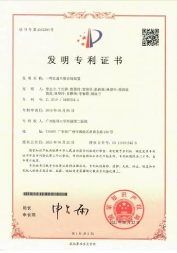 在接下来的几年里,他并没有在此止步,面对临床中遇到的困难,奋发破尘,先后提出了一种自动消毒垃圾桶、一种方便血液透析的病号服上衣、一种血透内瘘训练装置、一种血透用分流外接装置、一种血透机吸管自动清洗装置、一种血液透析监测护理装置、一种血液透析故障检测报警装置、一种血透辅助治疗仪等国家发明专利申请。至今,已获得国家专利6项,其中国家发明专利2项(见图4)。