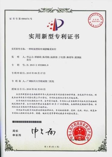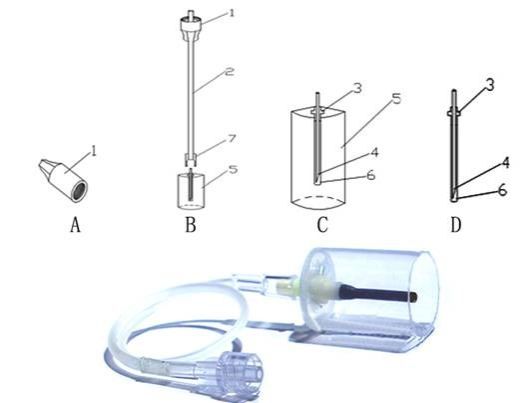 面对科室血透患者血标本采集的工作较繁杂,工作效率较低,以及在血标本采集的过程中常存在对标本易受污染、血细胞受到损坏、护士易发生针刺伤等严峻问题。他有个大胆的设想:为何不设计一种专用血透患者血标本采集工具来解决现存的问题呢?他迅速搭建了团队,从构思、文献检索、到设计图纸,历经2个多月的反复潜心假设与尝试,终于“功夫不负有心人”将新的采血工具设计完成,称之为《一种转接型防针刺采血针》(见图2)该创新,较好地解决了这道现存技术难题。不但提高了安全采集血标本的可靠性,还简化了繁杂的血透患者采血步骤流程,大大节省了采血时间,提高血标本采集的工作效率133%以上。同时,实现了密闭式采血,保持采血试管的真空负压,自动负压吸引采血,保证血标本质量的合格率,为检验结果提供安全可靠的保证。