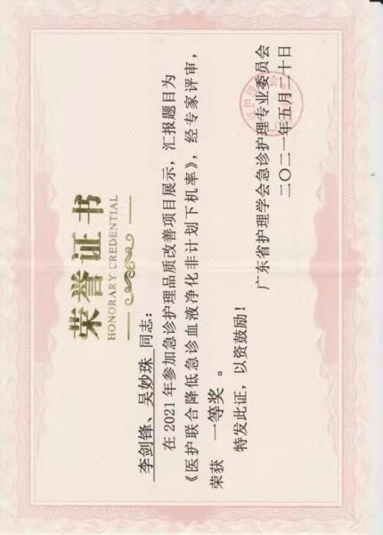 护理学专业本科毕业,获学士学位。本科毕业后在我校的附属第一医院急诊科工作至今。2008年5月12日,汶川地震震惊全国,面对突袭而来的灾难,李剑锋参加医院抗震救灾医疗队,冒着余震不断的危险前往地震重灾区——汶川映秀镇,参与汶川抗战救灾工作,医疗队在四川的工作受到了当地领导的高度肯定和群众的称赞。2010年的亚运会、亚残会期间,他参与亚运城运动员村医疗门诊部志愿服务,始终坚持微笑服务,保持高度热情、认真地接待每一位远道而来的客人。他用流利的英语,准确进行分诊登记、快速指引就诊,出色地完成任务。2011年,前往澳门山顶医院进修一个月,同年参加广东省首届急诊专科培训班,并取得专科护士资格,2014年起担任急诊科监护室护士长,负责病区的护理行政和业务管理工作。工作认真负责,兢兢业业,履行护士长的职责,个人临床专科护理业务知识扎实,能熟练掌握急诊专科、基础护理技术及仪器的使用,配合科室积极开展血液灌流,CRRT,血浆置换,PICCO监测,床边纤支镜治疗,器官捐献供体维护等技术业务,开展血液净化、呼吸机工作坊、血液净化知识竞赛等培训,2020年-2021年“医护联合降低血液净化患者非计划下机率”QCC项目,获得广东省医院品管圈大赛三等奖、广东省护理学会急诊QCC比赛一等奖;病区护理组获“2020年度医院优质护理服务先进集体”;2021年参与录制并出版人卫版慕课《常用急救技术操作规范》