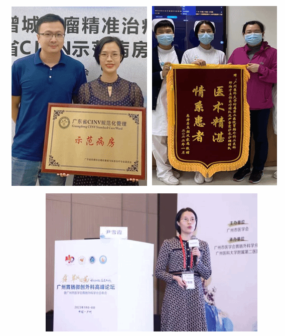 工作中注重护理工作质量持续改进,多次主持或者参与科室QCC活动,参与院内比赛获得较好的成绩。2020年《提高胃肠肿瘤术后化疗患者恶心控制率》,2021年8月协助胃肠外科通过广东省抗癌协会癌症康复与姑息治疗专业委员会评审验收,成功创建“CINV规范化管理治疗示范病房”。近年来,参与省、市级科研立项多项,发表护理学术论文多篇,参编专著1部,多次受邀省、市学会培训班授课。