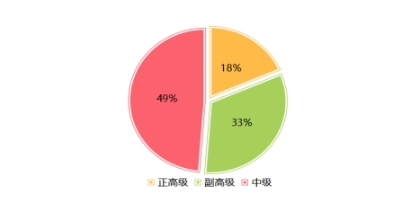 外科护理教研室共有专职教师5人:其中教授1人,副教授1人,讲师3人;博士学位5人(占比100 %);硕士生导师2名。临床教师38人:教授/主任医师/主任护师7人,副教授/副主任医师/副主任护师13人,讲师/主管医师/主管护师18人;博士学位3人(占比8 %),硕士学位13人(占比34 %);博士生导师1名,硕士生导师6名。结构见图1、图2。