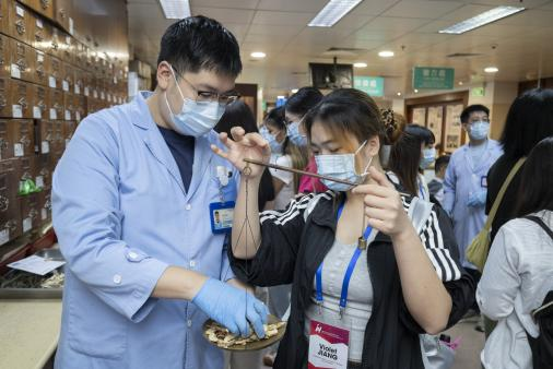 随后走访的历史慈善机构同善堂,静静地承载着中医药的独特记忆。那座拥有80多年历史的老中药柜,作为政府唯一特批可不贴药物标签的文物,斑驳的木纹里藏着岁月的故事,让学子们对中医药文化的传承有了更具体的体悟:传统并非一成不变,而是在保护中延续生命力。