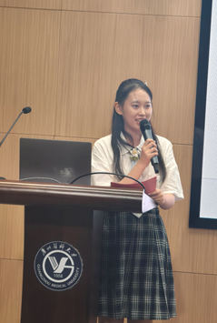 新生代表陈湘怡同学在发言中,表达了对大学生活的期待,并且表示将以钟南山院士为榜样,认真学习专业知识、积极参与实践活动,致力于成长为兼具专业素养与人文关怀的高素质护理人才,未来为守护人民健康贡献自身力量。